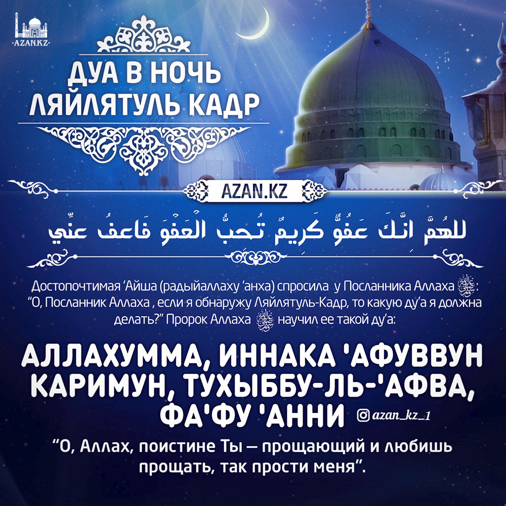Аиша, да будет доволен ею Аллах, однажды спросила у Посланника Аллаха, (ﷺ), какие дуа ей следует читать, если она застанет эту ночь. Посланник Аллаха (ﷺ), посоветовал ей произносить следующее дуа: