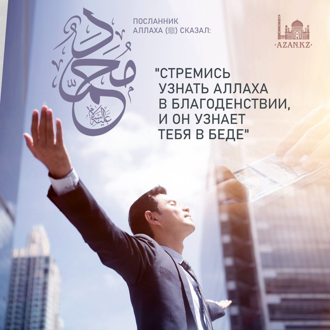 «И стремись узнать Аллаха в благоденствии, и Он узнает тебя в беде. И знай, что обошедшее тебя стороной не могло постичь тебя, а постигшее тебя, не могло тебя обойти стороной. Так же знай, что помощь приходит после проявления терпения, радость, после скорби, а облегчение после тягот».