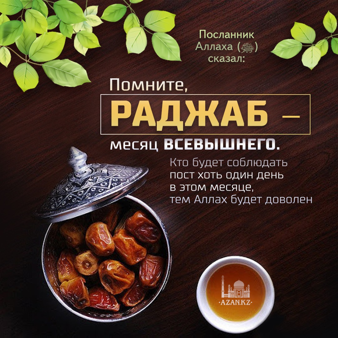 Помните, раджаб – месяц Всевышнего, кто будет соблюдать пост хоть один день в этом месяце, тем Аллах будет доволен.