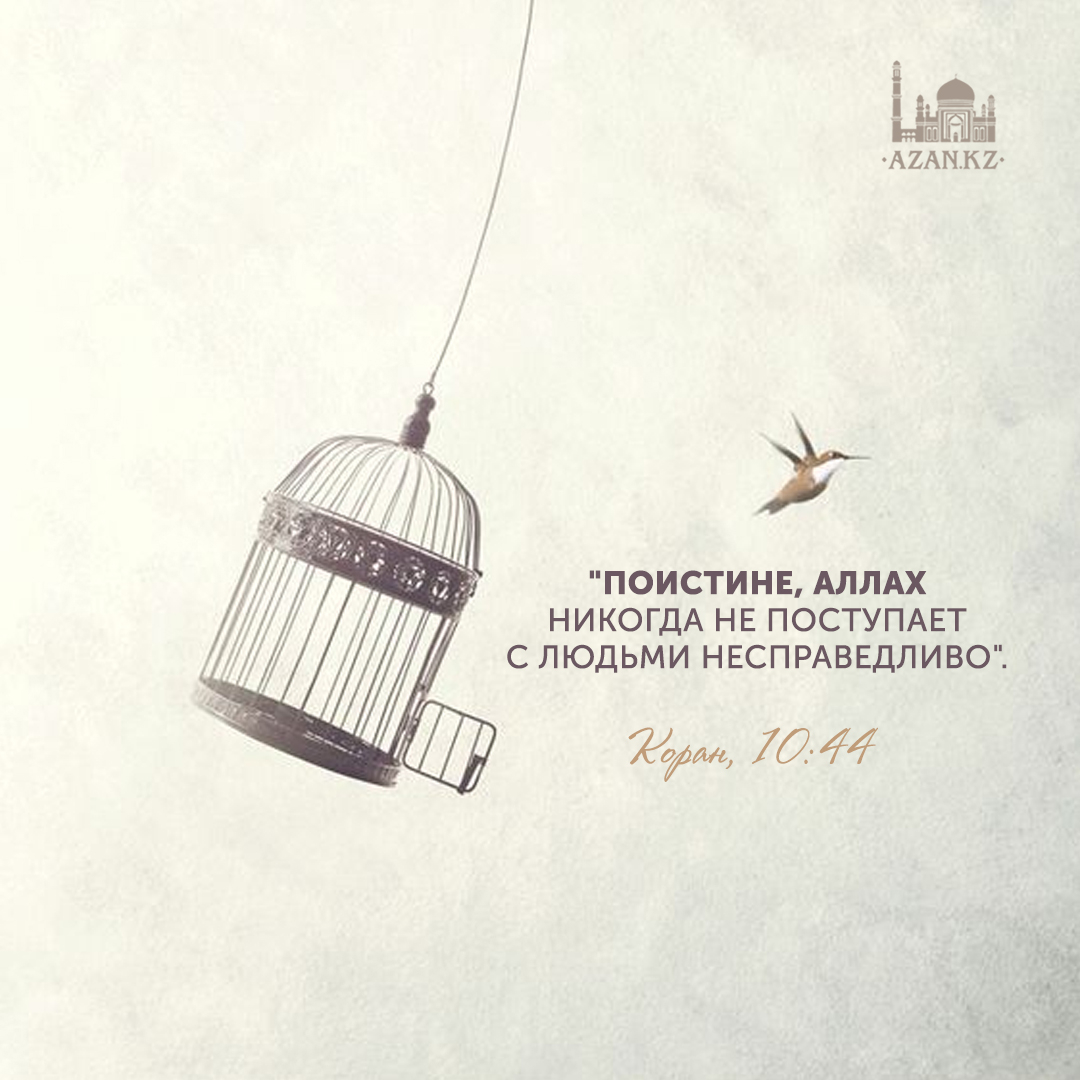 «Поистине, Аллах никогда не поступает с людьми несправедливо. Это люди обходятся несправедливо сами с собой» (Сура «Юнус, аят 44).