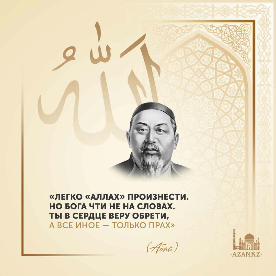 «Легко «Аллах» произнести. Но бога чти не на словах. Ты в сердце веру обрети, А все иное — только прах». (Абай).