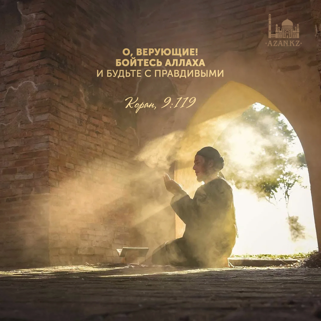 «О, верующие! Бойтесь Аллаха (избегайте грехов) и будьте с правдивыми (в вере и выполняйте обещания)» (Сура «Ат-Тауба», аят 119).