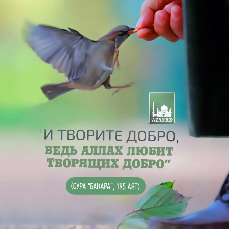 “И творите добро, ведь Аллах любит творящих добро” (сура “Бакара”, 195 аят)
