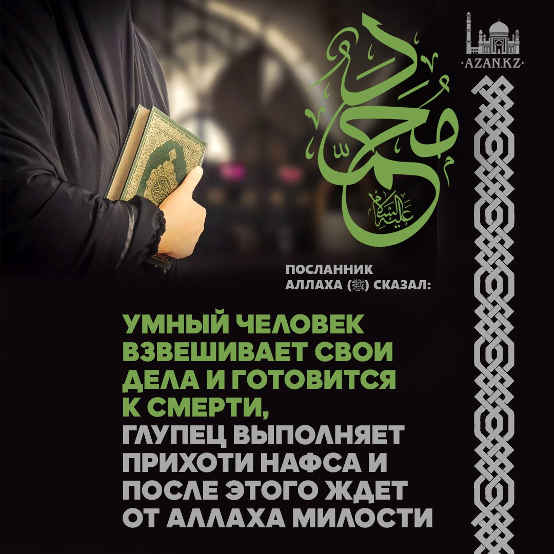 «Умный человек тот, кто взвешивает свои дела и готовится к смерти, глупец выполняет прихоти нафса и после этого ждет от Аллаха милости».