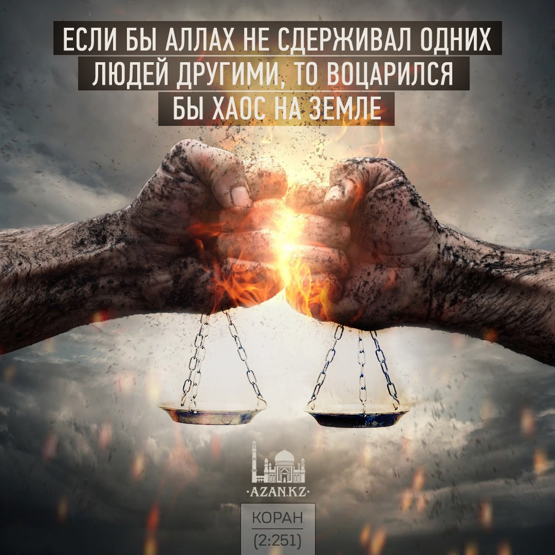 «Если бы Аллах не сдерживал одних людей другими, то воцарился бы хаос на Земле, но Аллах оказывает милость мирам».