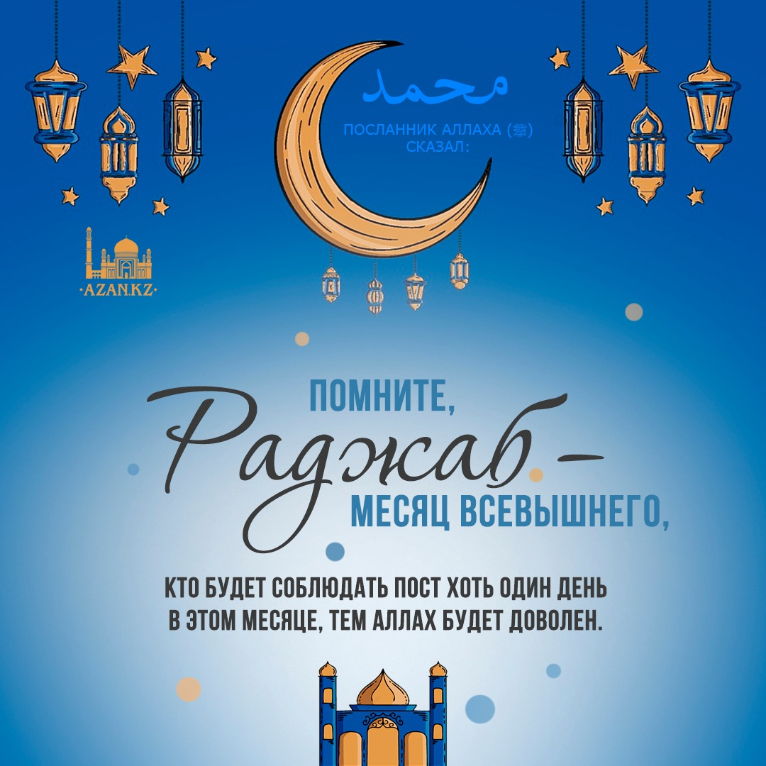 Помните, раджаб – месяц Всевышнего, кто будет соблюдать пост хоть один день в этом месяце, тем Аллах будет доволен.
